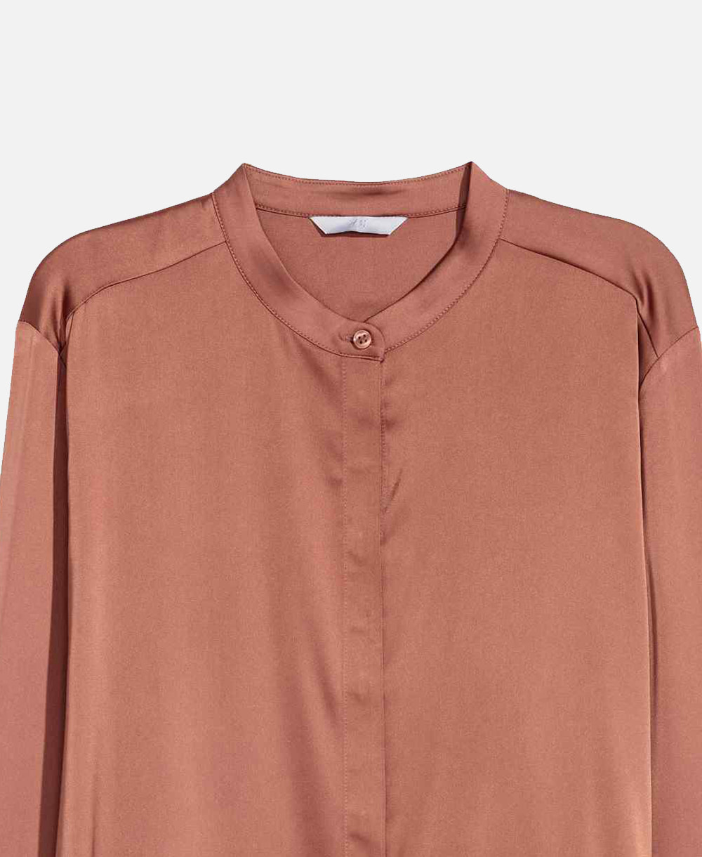 Jumper in a marled knit containing some wool with ribbed side sections, slits in the sides and wide ribbing at the cuffs and hem. Slightly longer at the back. Jumper in a soft knit containing some wool with a small, ribbed stand-up collar and a hole pattern at the front and along the sleeves. Dropped shoulders and long, wide sleeves that taper to the cuffs.
